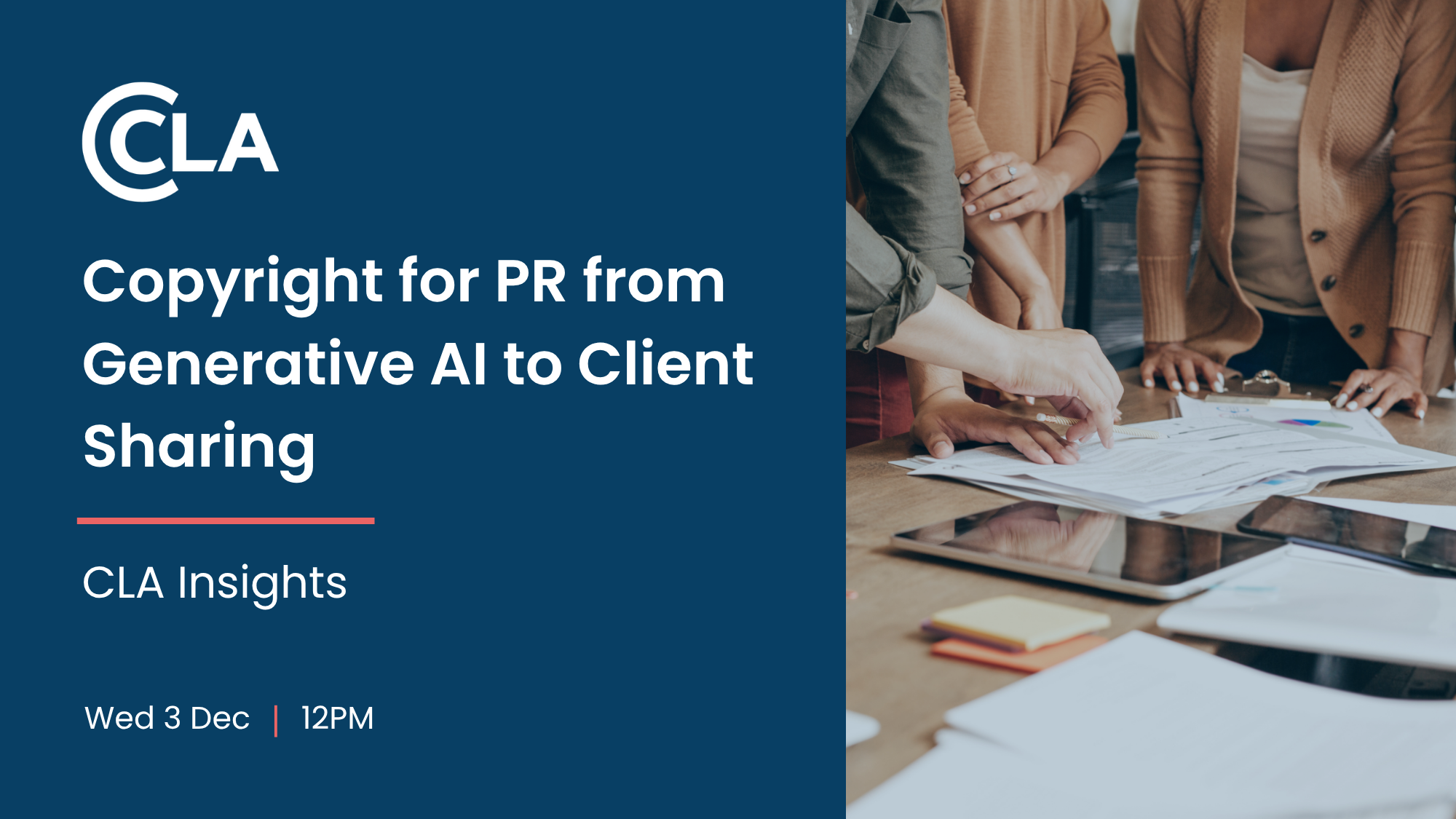 December 3 @ 12:00 pm - 12:30 pm CLA Insights: Copyright for PR from Generative AI to Client Sharing Did you know that 97% of PR firms share content externally each year? This CLA Insights webinar explores how agencies can confidently navigate copyright, client content sharing, and the rise of generative AI in the workplace with CLA's Business Licence and Media Consultancy Licence add-on. We’ll cover: - Common workplace copying habits in PR and […]